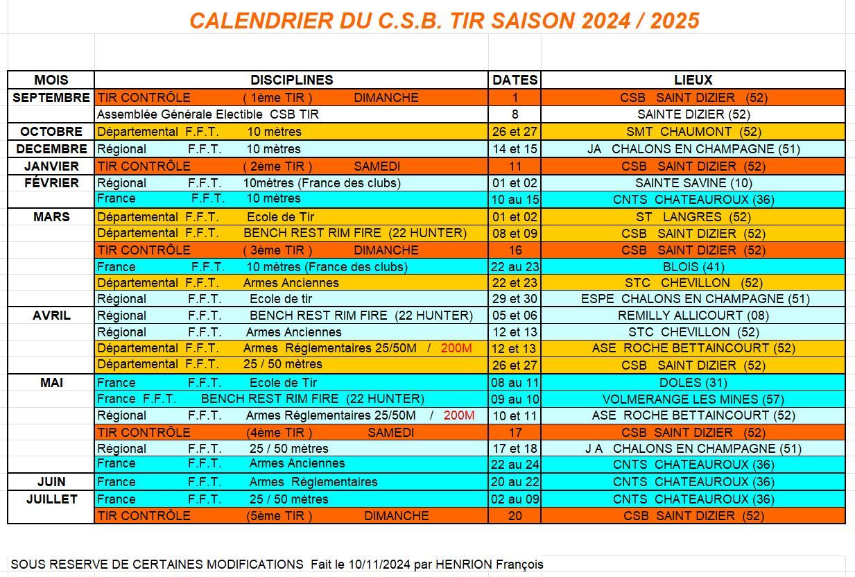 CALENDRIER DES COMPÉTITIONS 2024/2025