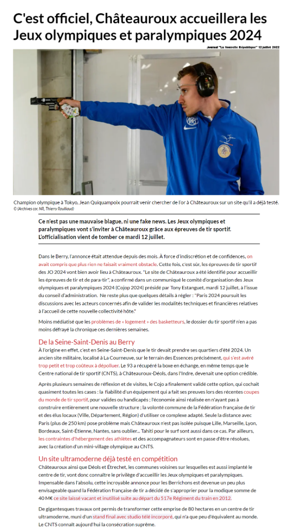 Cette distinction vient récompenser son engagement exemplaire et de nombreuses années passées au service de notre club en tant que trésorier, et au service également d'autres clubs de la région Grand-Est en tant que président du C.D.T.H.M, arbitre national, R.R.A, responsable des homologations de clubs, membre de commissions à la Ligue de Champagne de Tir, etc...etc...