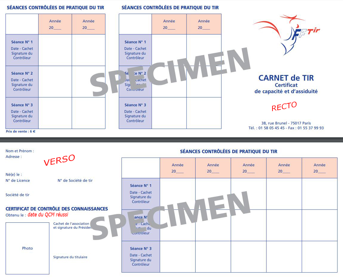 Il permet d’obtenir le Carnet de Tir, qui fait suite à la validation du questionnaire mettant en évidence les connaissances des tireurs concernant l’acquisition et le respect des différentes règles et comportements de sécurité édictés par la FFTir.